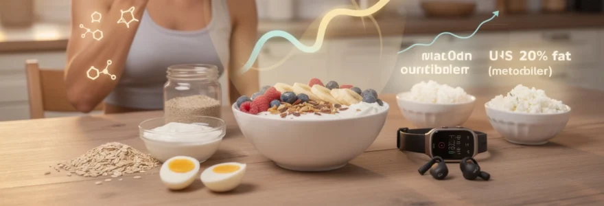 L’effet entrainement exercé par la prise protéique matinale stabilise également la production de mélatonine nocturne, favorisant un sommeil de qualité et maintenant la cohérence des rythmes veille-sommeil. Cette régulation circadienne bidirectionnelle crée un cercle vertueux : un petit-déjeuner protéiné améliore le sommeil nocturne, qui à son tour optimise la réponse métabolique matinale. Les études chronobiologiques démontrent qu’une consommation régulière de protéines laitières au petit-déjeuner peut avancer la phase circadienne de 30 à 45 minutes chez les chronotypes tardifs, facilitant leur adaptation aux contraintes horaires matinales et améliorant leur performance cognitive et physique en début de journée.